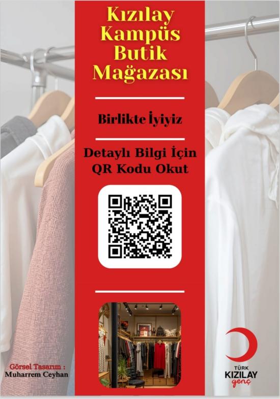 Vali Şinasi Kuş Kongre Merkezi içerisinde hizmet veren Kızılay Butik Mağazası, öğrencilerimize yönelik giyim desteği sunmaktadır. Süreç hakkında daha detaylı bilgiye QR kodu okutarak ulaşabilirsiniz.