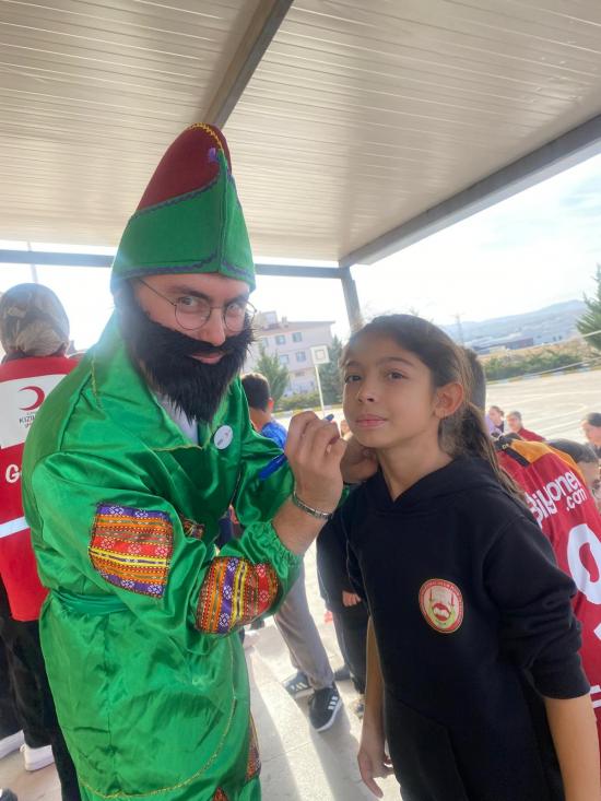 Etkinlik, geleneksel kültürümüzü yansıtan kısa bir Hacivat-Karagöz gösterisi ile başladı. Gösterinin ardından okul bahçesinde öğrencilerle yüz boyama etkinlikleri ve eğlenceli grup oyunları gerçekleştirildi. Günün ilerleyen saatlerinde Kızılay’ın tanıtım sunumu yapılarak öğrencilere kurumun faaliyetleri, gönüllülük çalışmaları ve insani yardım misyonu hakkında bilgiler verildi. Etkinliğin sonunda, daha önceden hazırlanan hediye paketleri teslim edilerek dayanışma ruhu pekiştirildi.