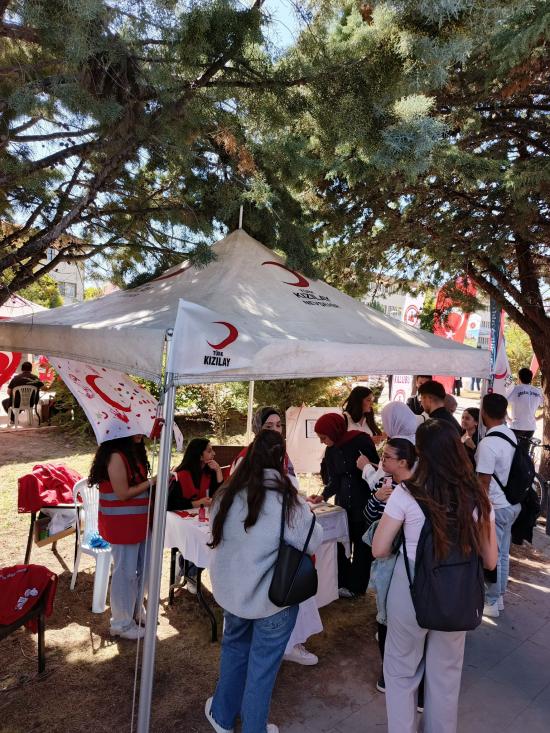 Öğrenci Kulüpleri Tanıtım Standı Günleri kapsamında düzenlenen etkinliklere ait görseller, gençlerin gönüllülük ve dayanışma ruhunu yansıtmaktadır. Etkinlik boyunca kaydedilen bu kareler, Genç Kızılay’ın özverili çalışmalarını ve katılımcıların ilgisini göstermektedir.