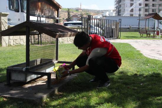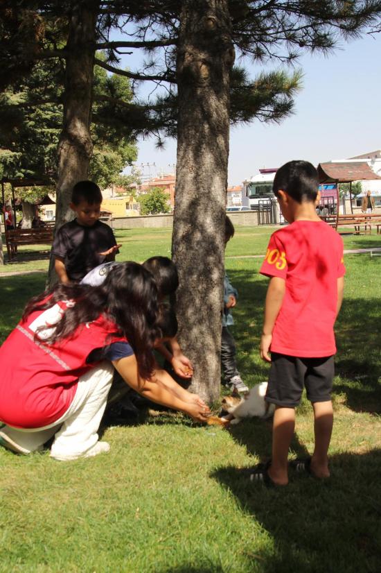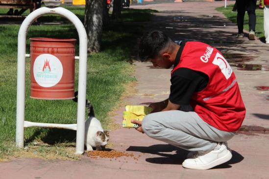 Dünya Hayvanları Koruma Günü kapsamında düzenlenen etkinlikte, gönüllüler tarafından sokak hayvanlarına mama ve su dağıtımı yapıldığı anlara ait görseller paylaşılmıştır.